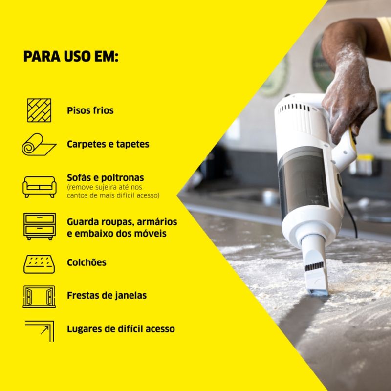 Aspirador de Pó Vertical 2 em 1 Kärcher VCL 2 transforma a limpeza do dia a dia em uma tarefa rápida e sem esforço. Com design ergonômico e alta potência de sucção, ele é ideal para quem busca praticidade para manter a casa sempre limpa, dos pisos aos cantinhos mais difíceis, sem levantar poeira e com muito mais agilidade.