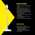Praticidade e Facilidade de Uso: Montagem rápida e intuitiva. Além disso, sua estrutura leve e ergonômica aliada ao cabo elétrico de 5 metros proporciona mais mobilidade na rotina de limpeza.