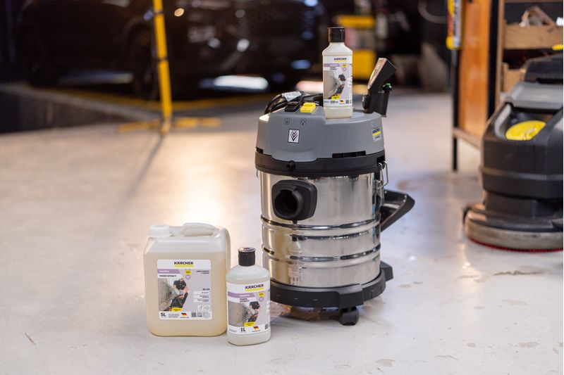 O CarpetPro PowerExtract RM 764 é a fórmula concentrada da Kärcher que garante a limpeza profissional de carpetes, estofados, sofás e colchões.