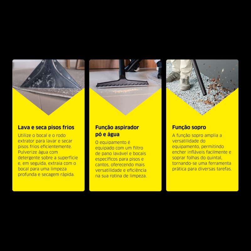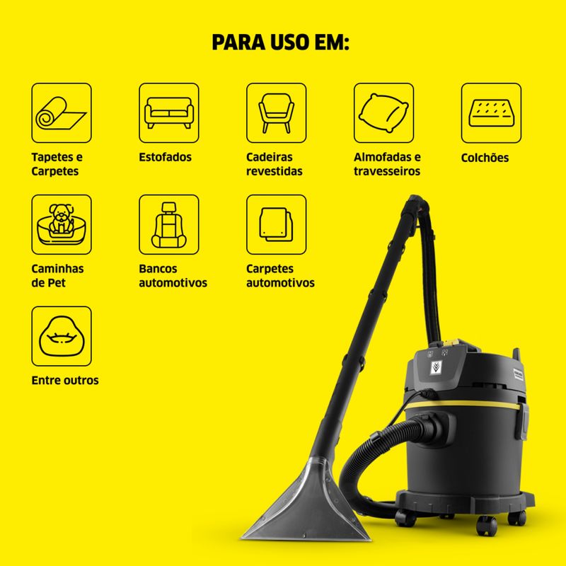 Extratora Limpadora de Estofados Kärcher SE 4 Black garante limpeza profunda e prática em estofados, tapetes, carpetes e pisos, unindo alta performance a um design compacto e funcional. Ideal para uso doméstico e comercial.