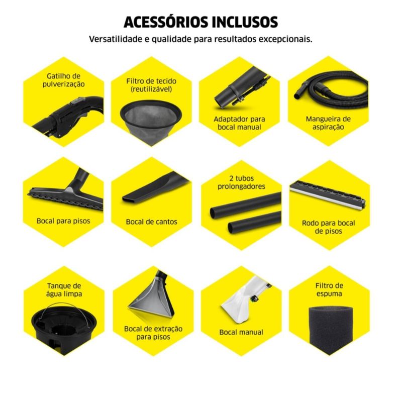 Principais Características:- Potência de 1600W: Remove sujeiras e manchas difíceis com eficiência.