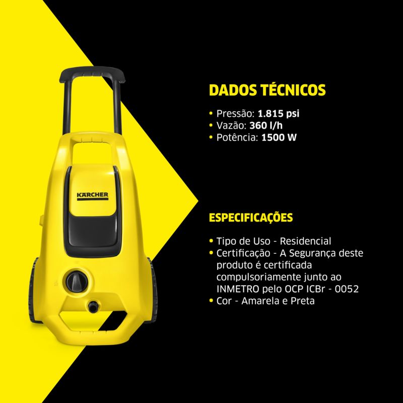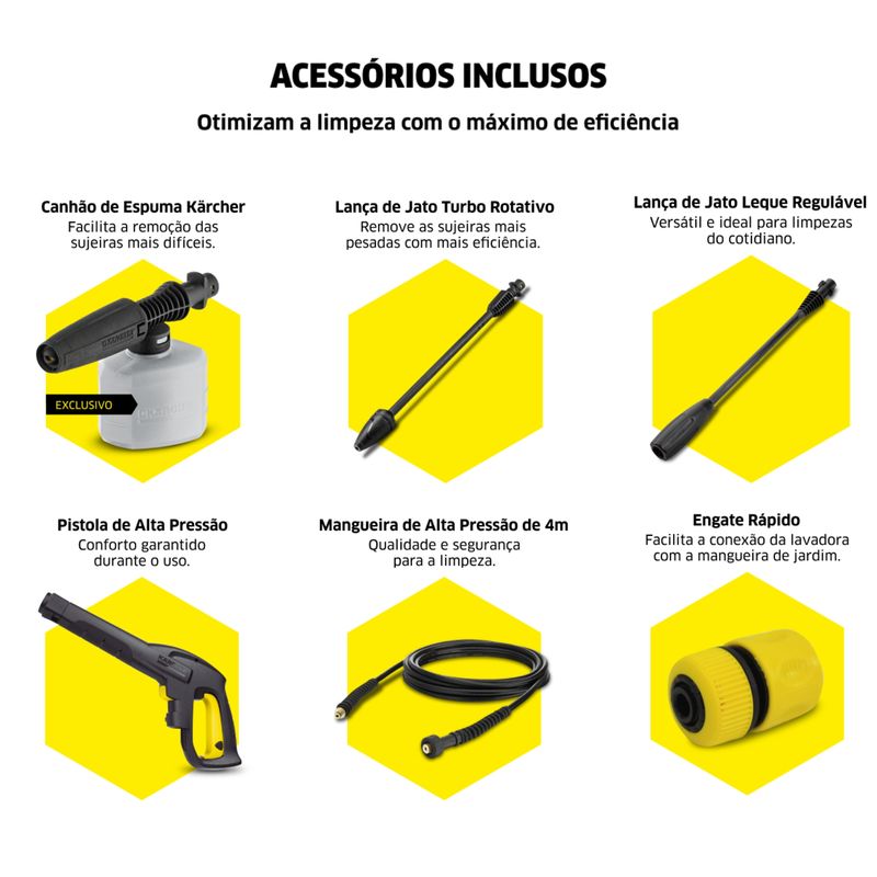 Acessórios inclusos:- 1 lavadora de Alta Pressão K3 Force Turbo