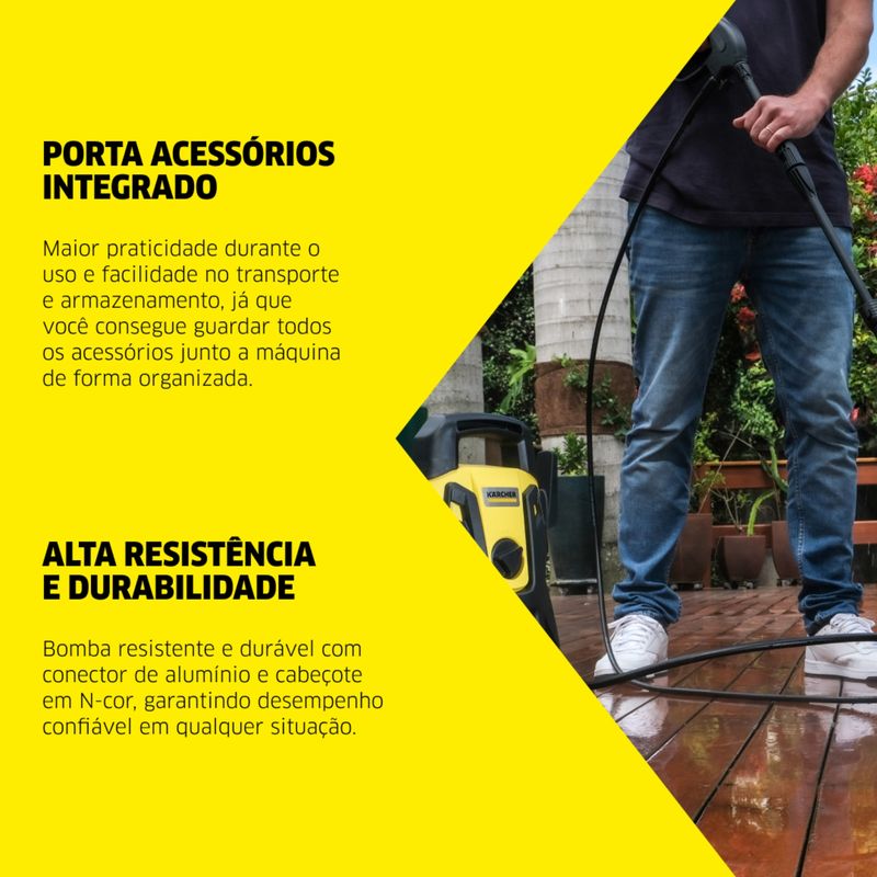 Lavadora de Alta Pressão Kärcher Portátil é a solução ideal para quem busca eficiência e praticidade na limpeza residencial. Com 1.500 PSI de pressão e um motor de